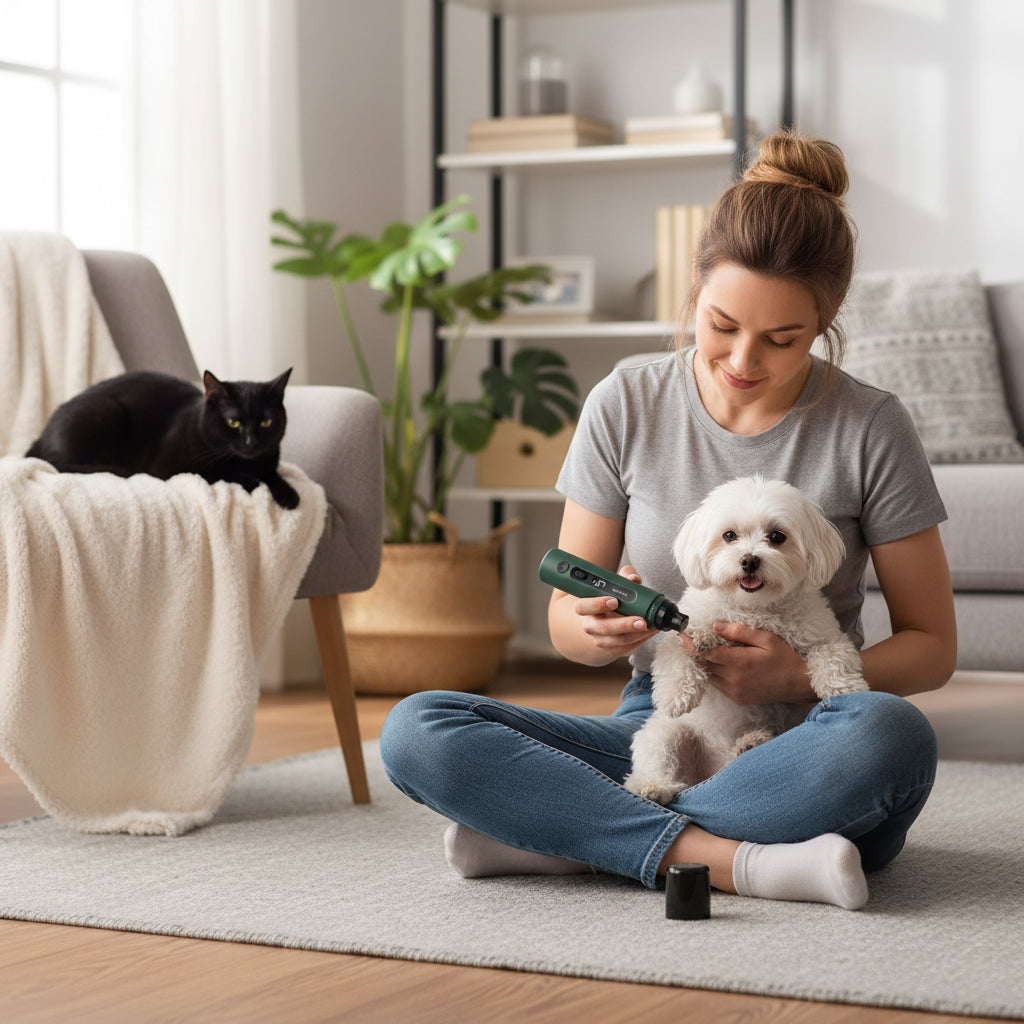 This quiet electric dog and cat nail grinder is designed to make grooming safe, gentle, and comfortable — right at home.