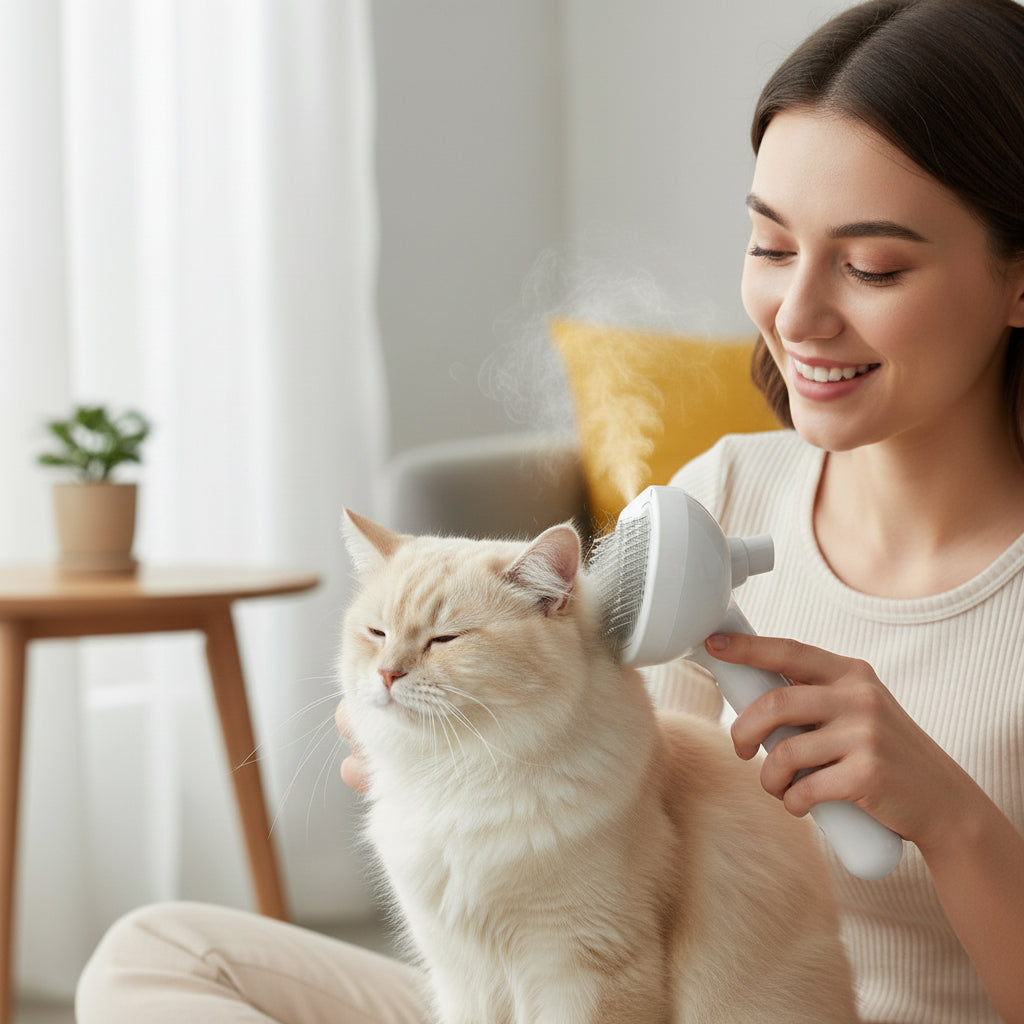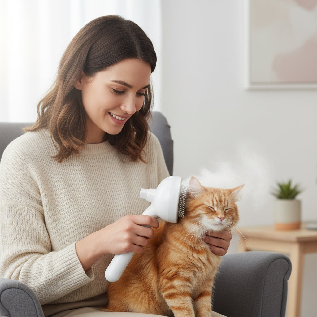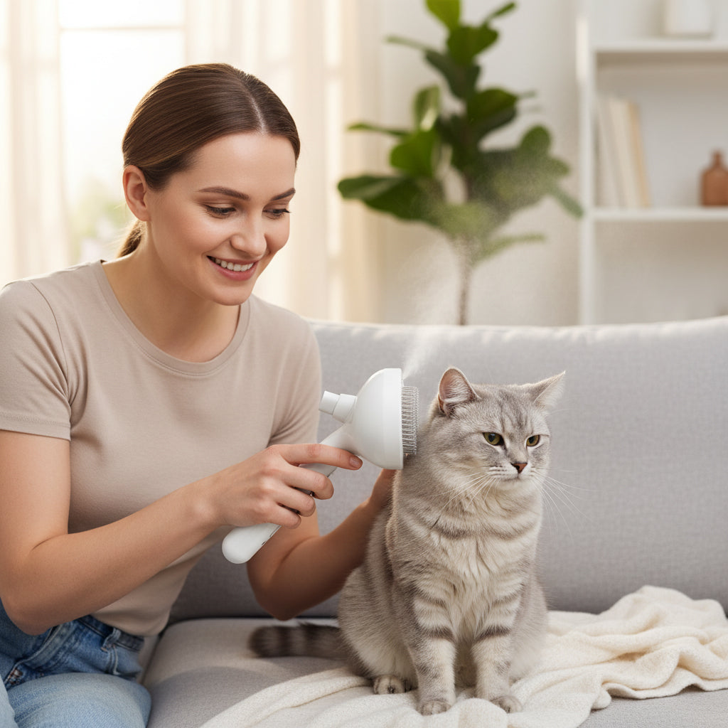 Find answers to common questions about our Self-Cleaning Pet Grooming Comb with Built-In Mist and learn how it makes pet grooming easier, cleaner, and more comfortable.